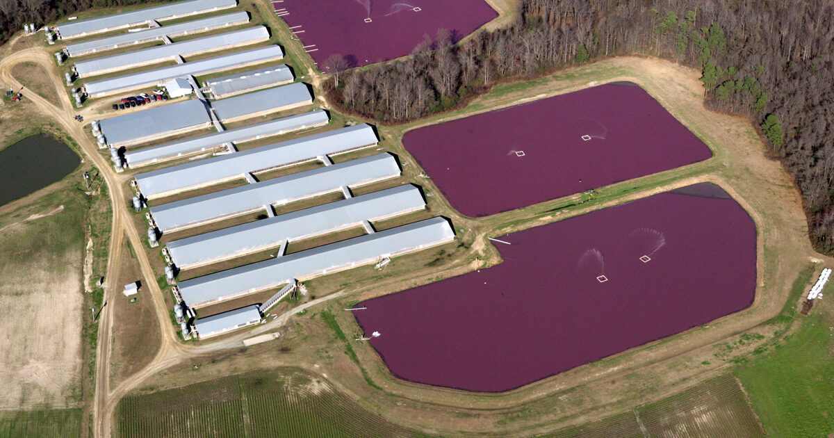 Human-made pond lines with rubber built to handle large quantities of manure produced by livestock
