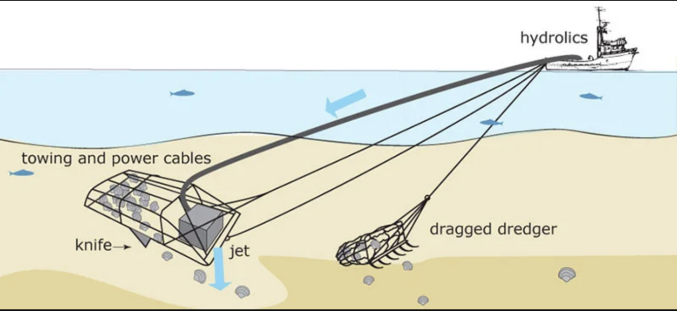 Dredges are large, metal-framed baskets that are dragged across the seafloor to collect shellfish like oysters, clams and scallops. In order to lift the catch into the basket, metal teeth dig into the seafloor, which can significantly impact seafloor habitat and bottom-dwelling species. Solution: don’t dredge near breeding grounds and nurseries.