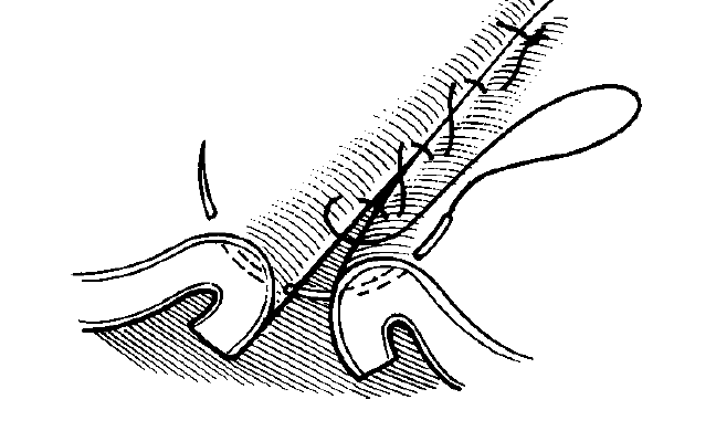 turns tissue edges towards the patient, away from the surgeon or into a hollow cavity
