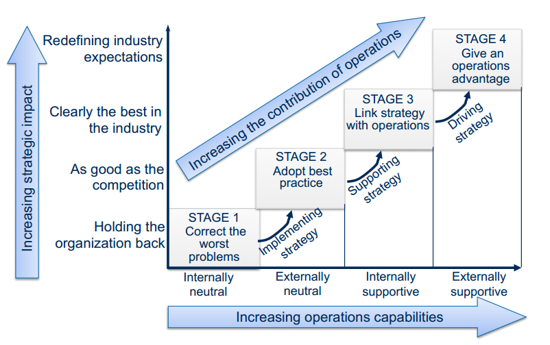 The Strategic Role of Operations can be defined by its aspirations (Ambitionen/ Bestrebungen): 4 Stages