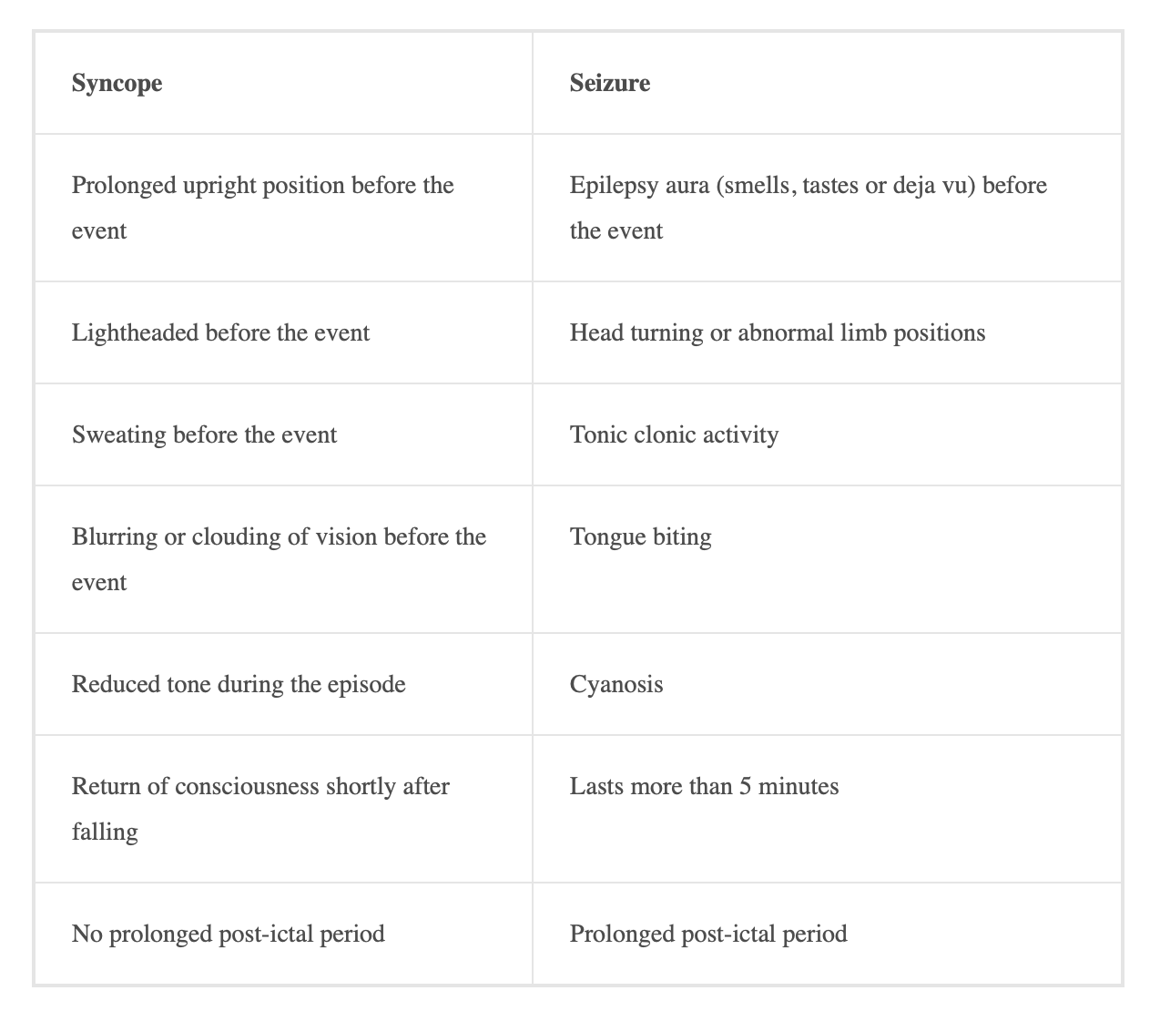 A collateral history from someone that witnessed the event is essential to get an accurate impression of what happened. During a vasovagal episode they may describe the person: