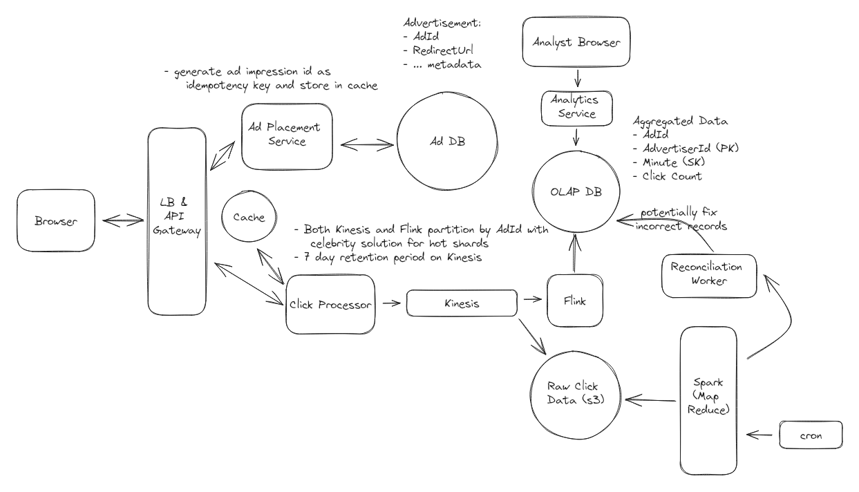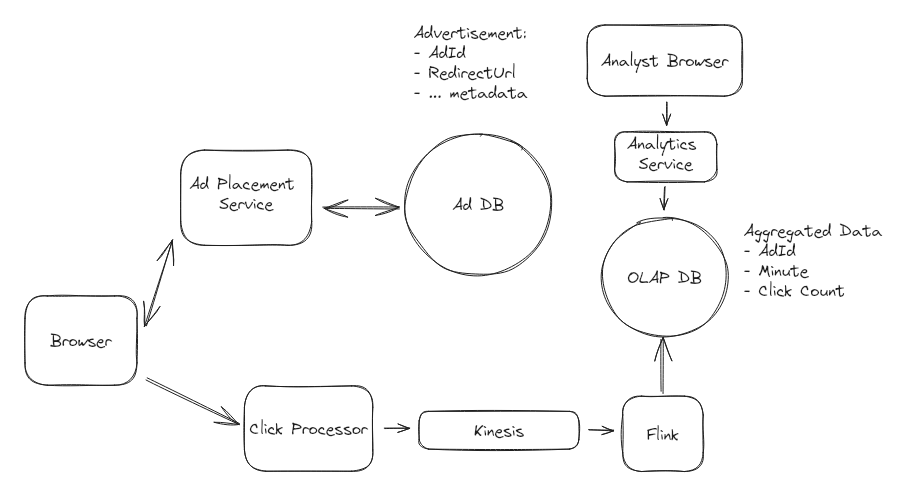 Advertisers can query ad click metrics over time with a minimum granularity of 1 minute