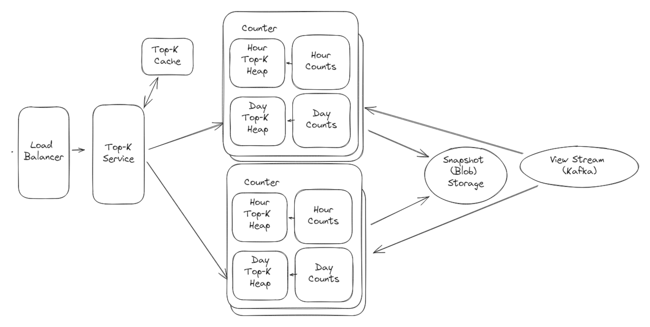 Clients should be able to query the top K videos (max 1000) for a given time period.
