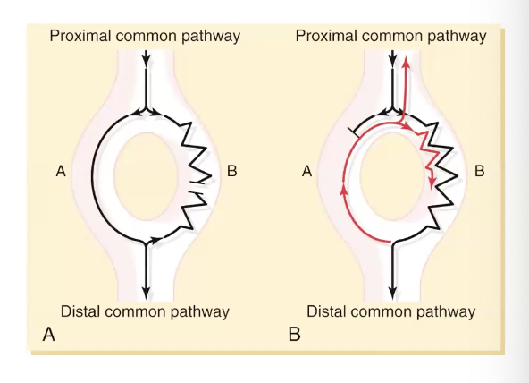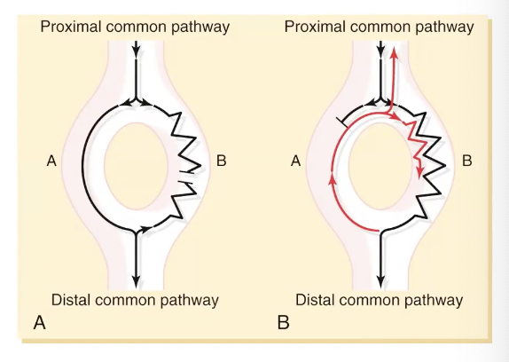 What is the dominant mechanism for supraentricular tachycardis & ventricular tachycardia?