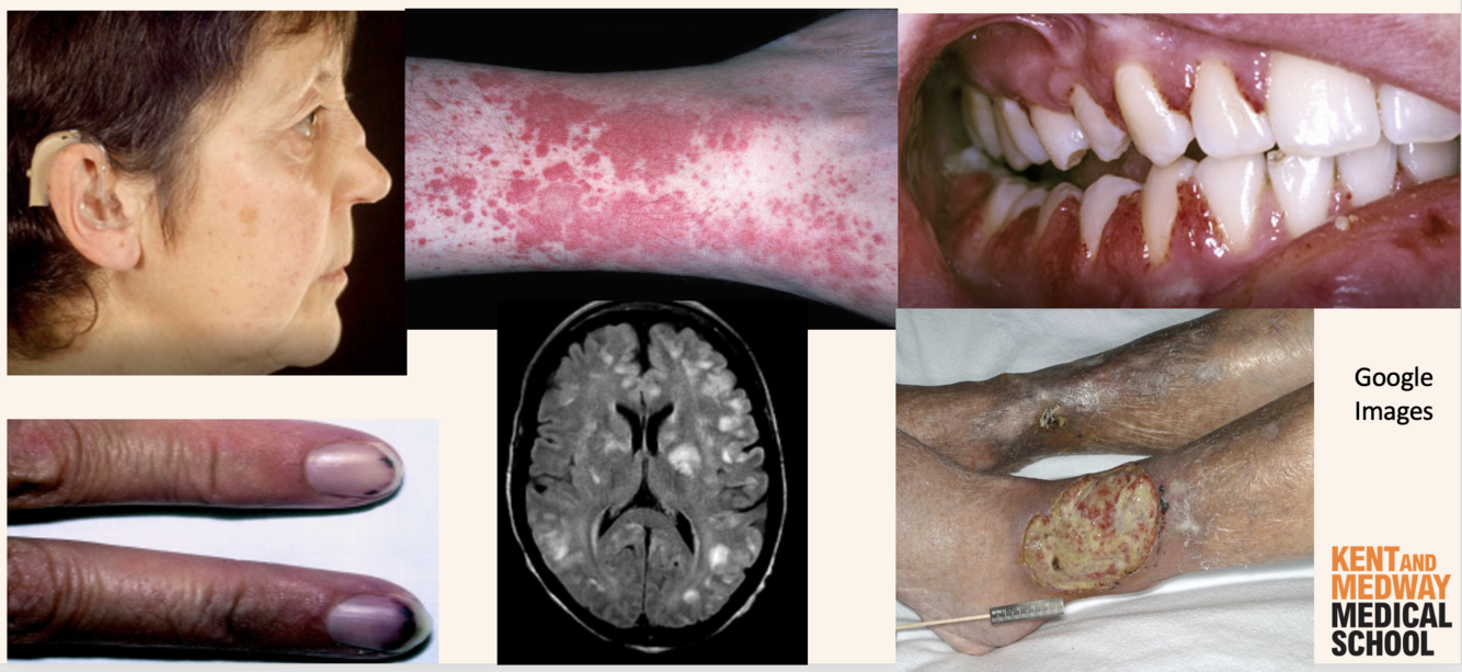 4 - Neural = cerebral vasculitis (white matter on T2 scan)