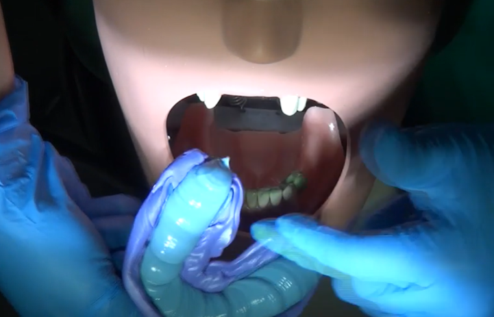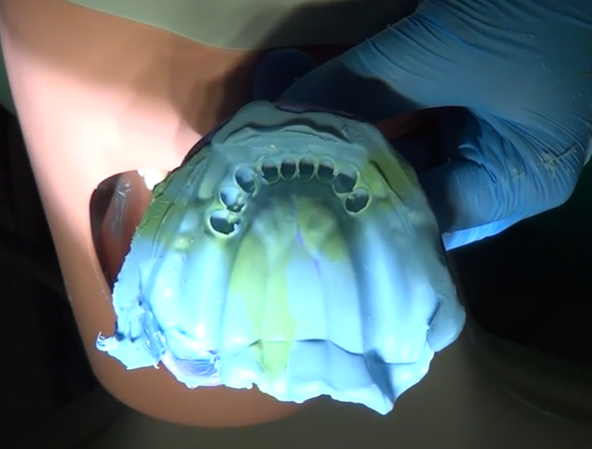 apply light bodies silicon to hard areas, pay particular attention to prepared areas of the teeth