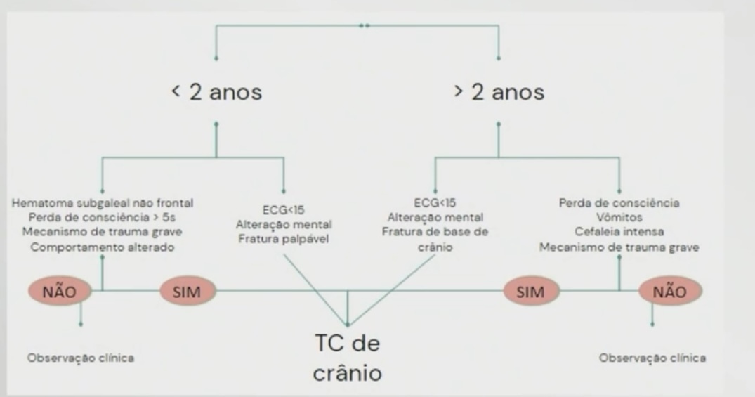 Paciente com TCE leve, conduta se <2 anos? Conduta se >2 anos? (PECARN)
