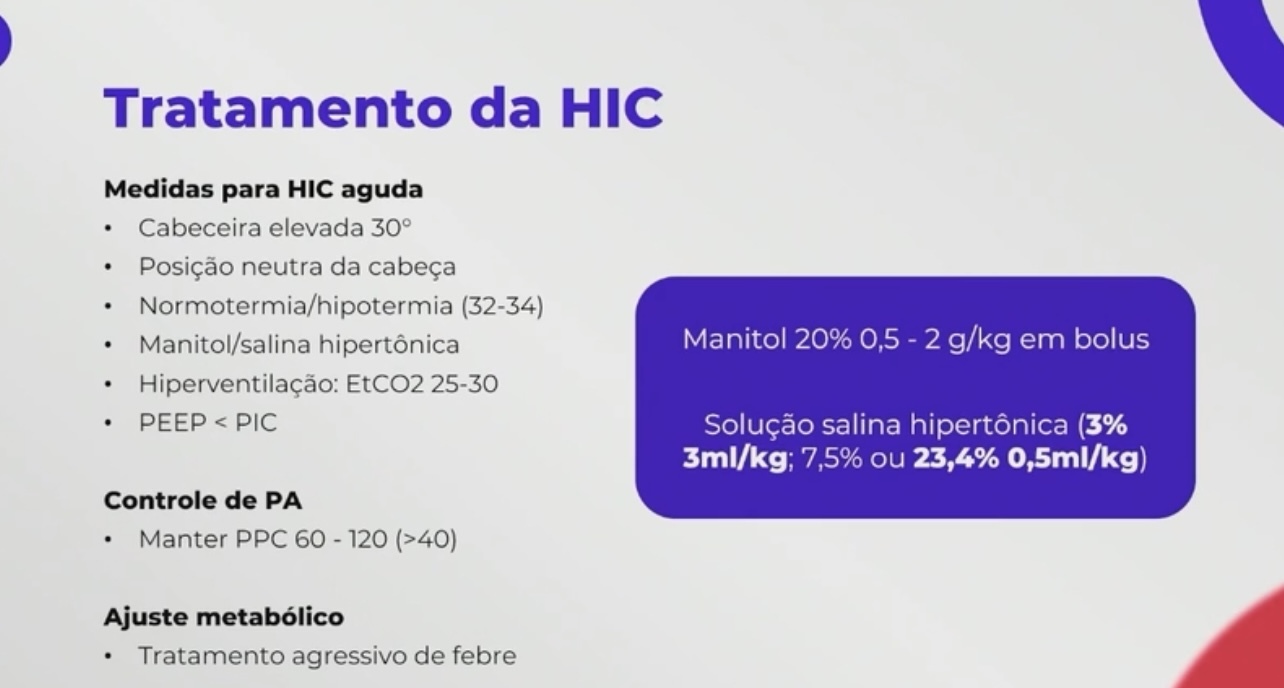 - abordagem cirúrgica (craniectomia, derivação de hidrocefalia, drenagem de hematomas)