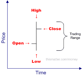 1: -Vertical lines from the high to low price for each trading period.