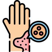 Lesiones dérmicas de color púrpura, ligeramente elevadas y localizadas en el pulpejo de los dedos de las manos y los pies, generalmente acompañadas de dolor local