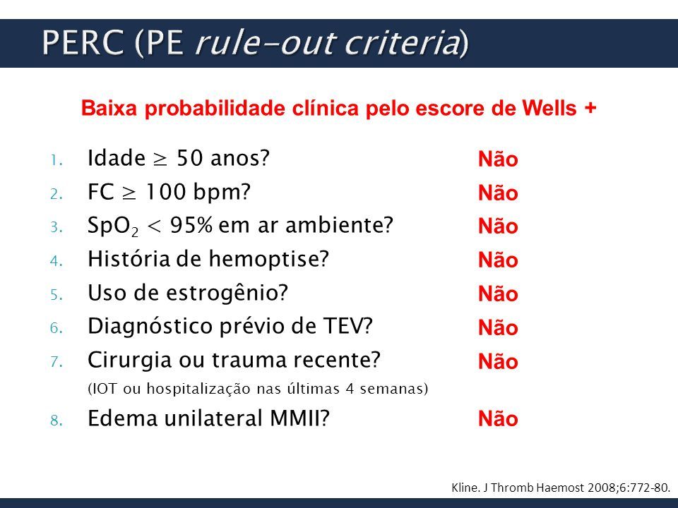 Quanto menor o PERC _________(maior/menor) a chance de TEP
