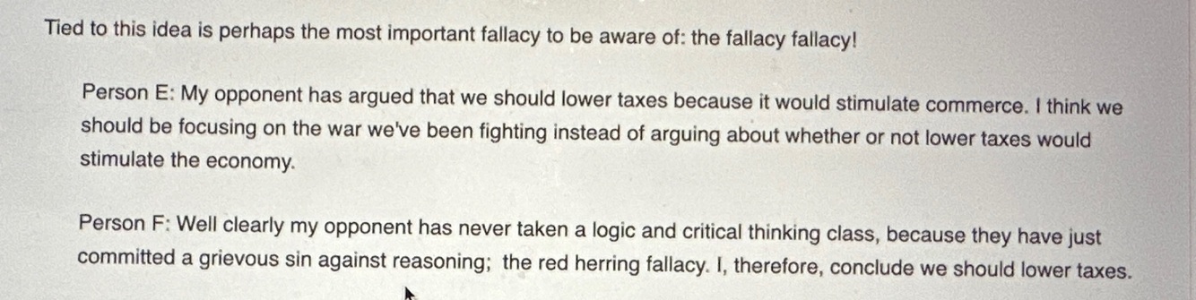 When someone uses the fact that a fallacy was committed to justify rejecting the conclusion of the fallacious argument