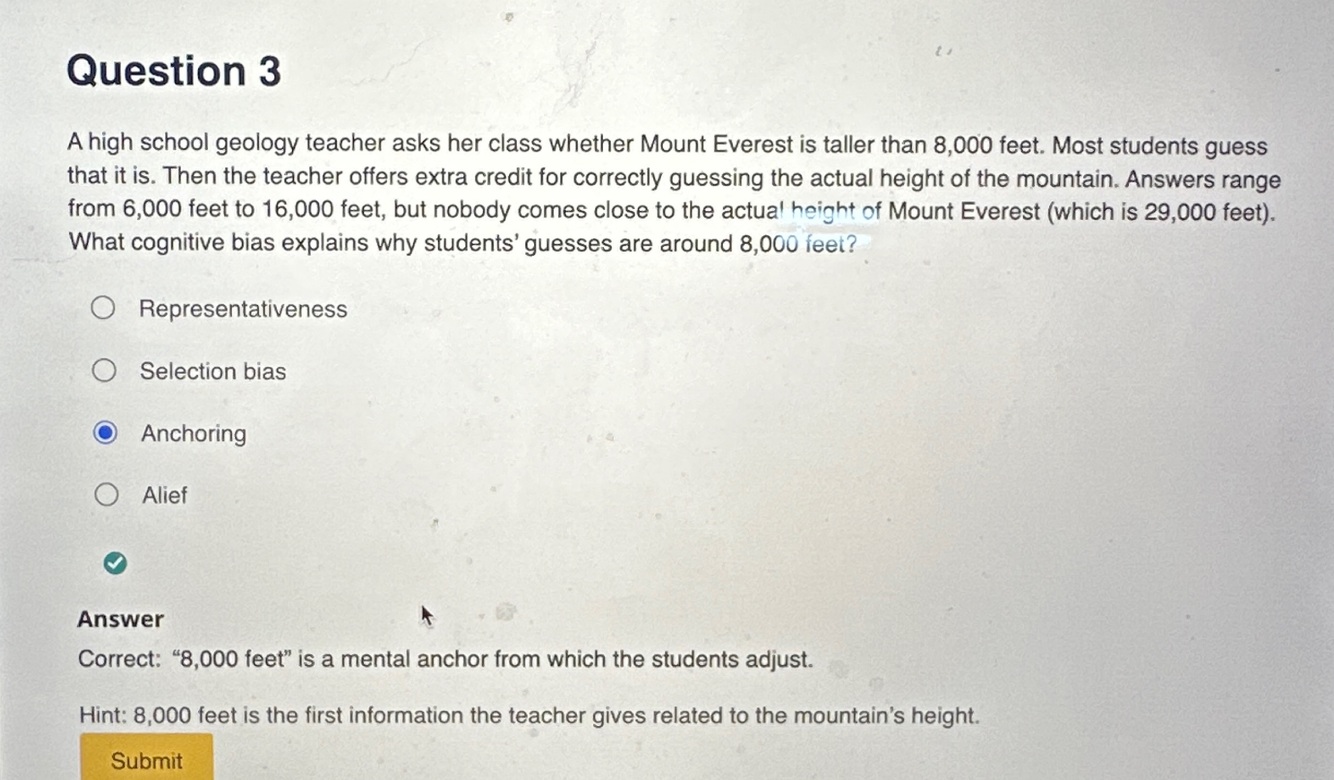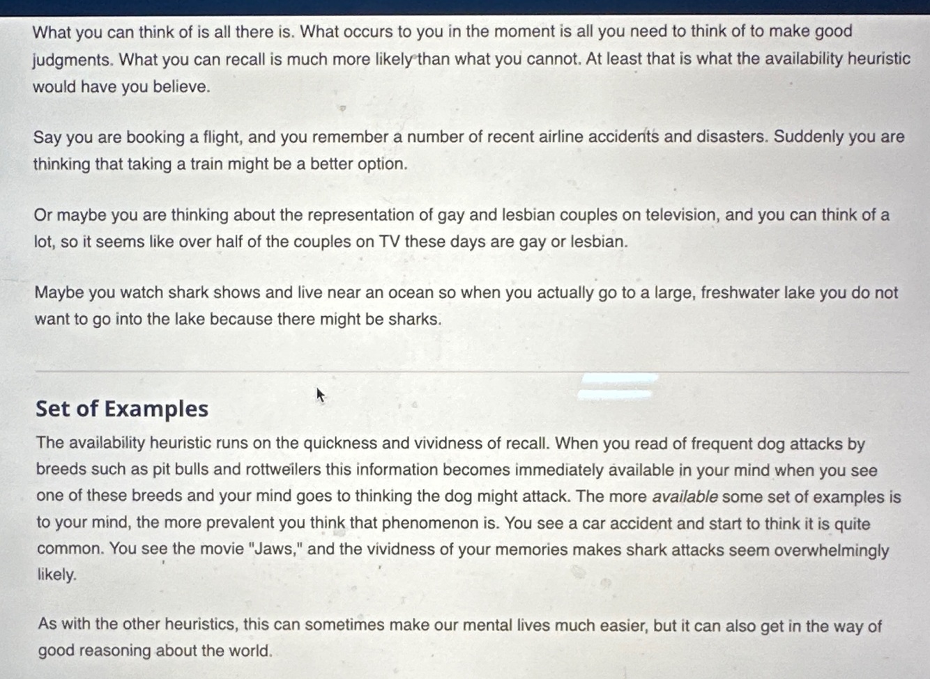Human tendency to stick close to the FIRST piece of information we have a about a new domain