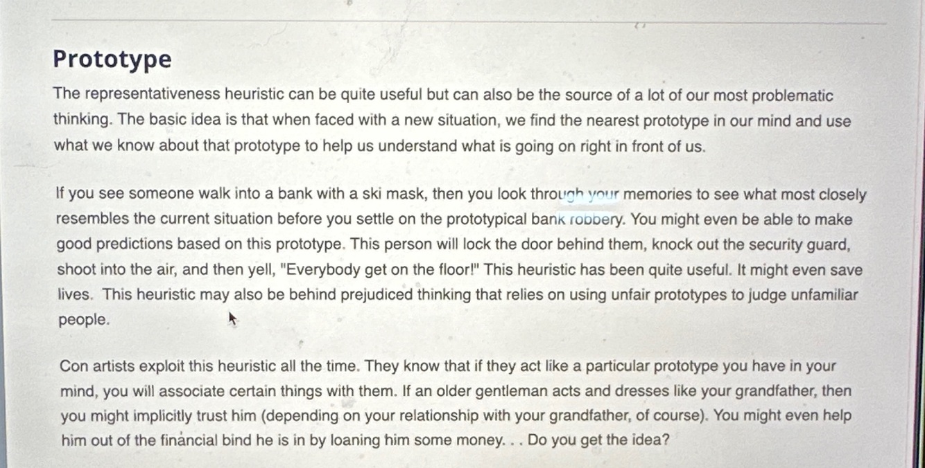 Cognitive bias in which an individual categorizes a new situation based on nearest prototype or representative experience in their mind