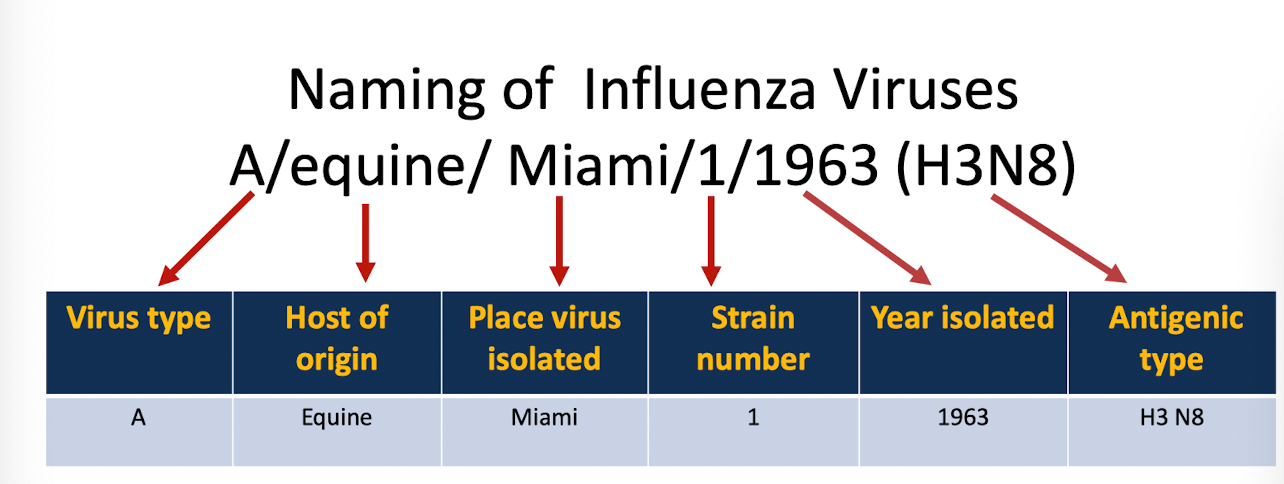 Flu (orthomyxo): enveloped, pleomorphic- spherical or filamentous, medium size (120 nm), large spikes, segmented negative sense ssRNA