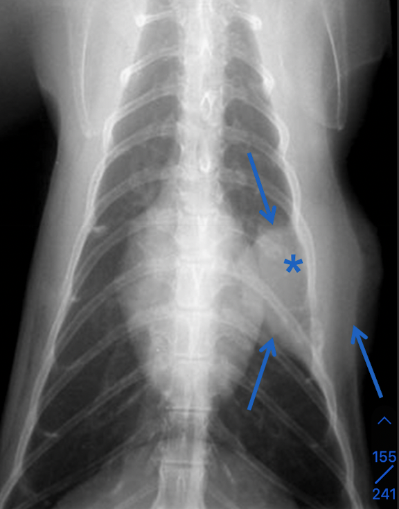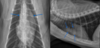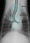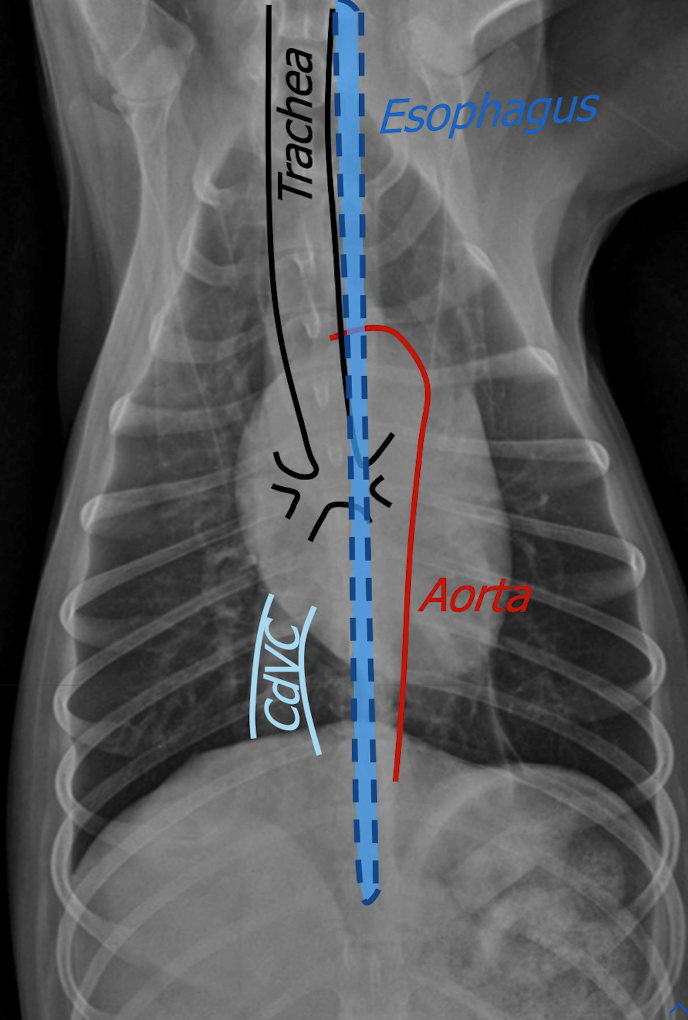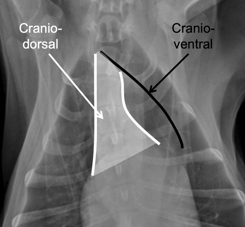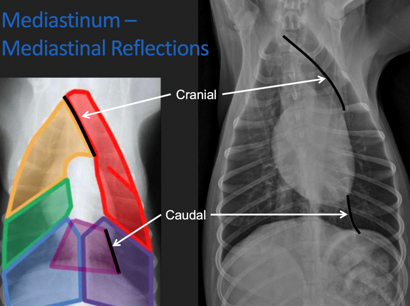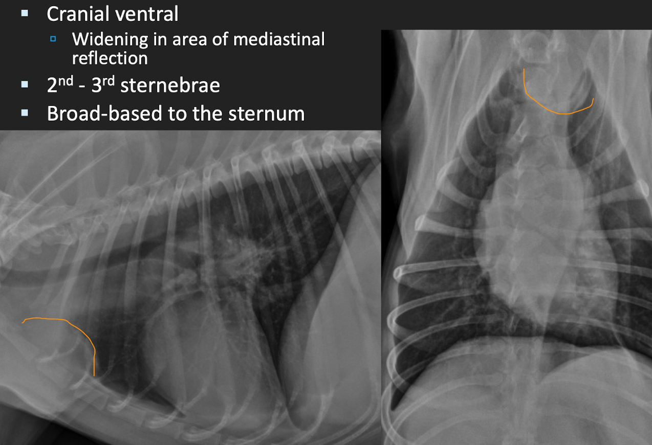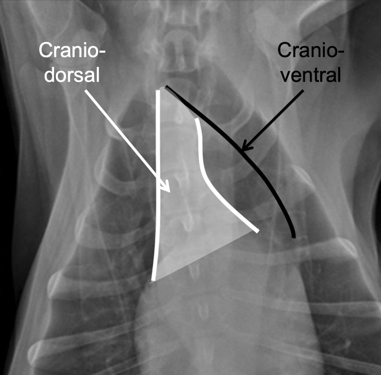 middle tracheobronchial cause ventral deflection, L and R cause dorsal deflection