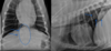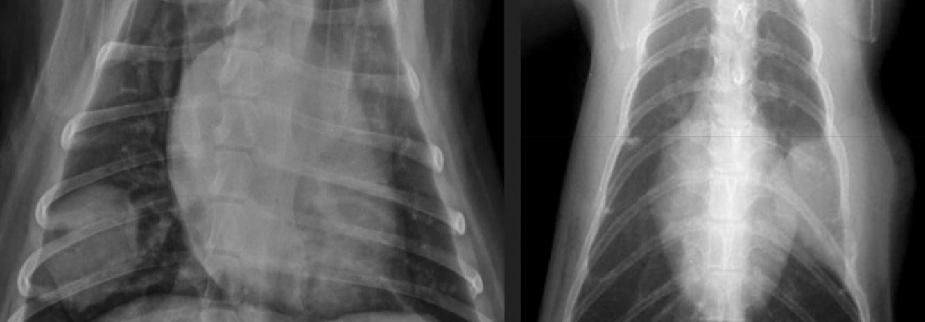 both will show bowing of the mainstem bronchi on VD (cowboy) and double opacity sign