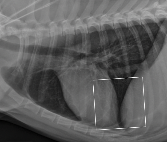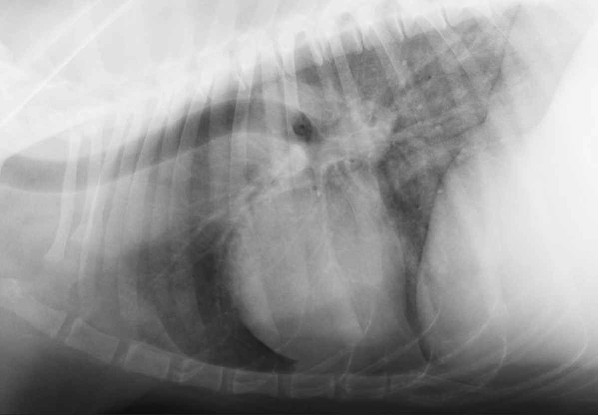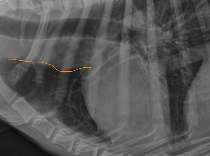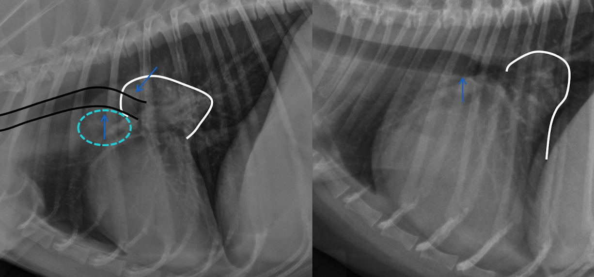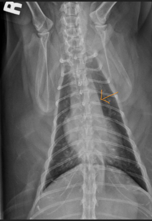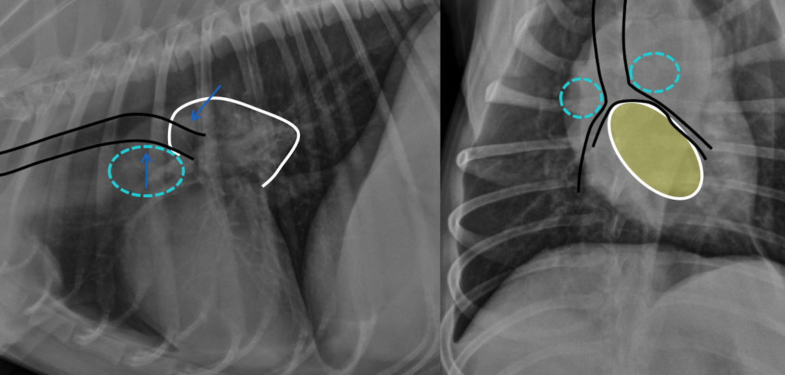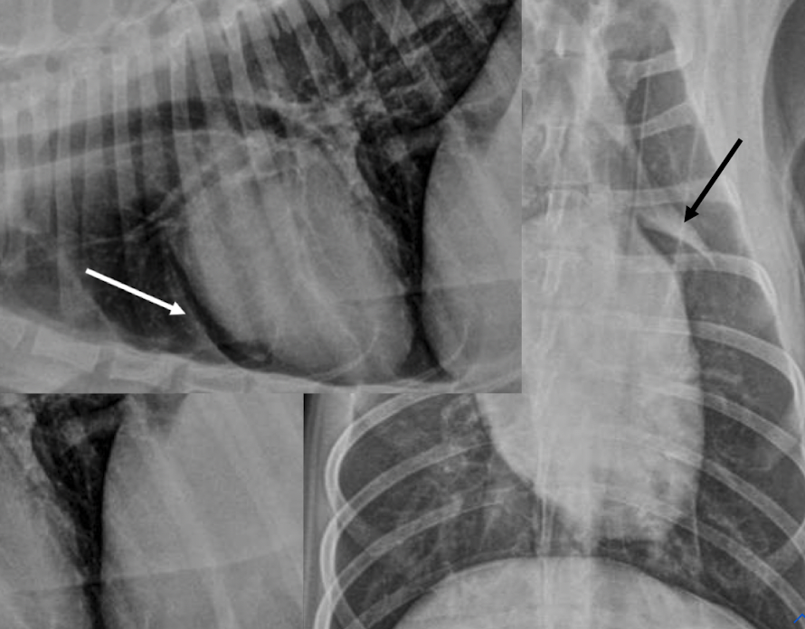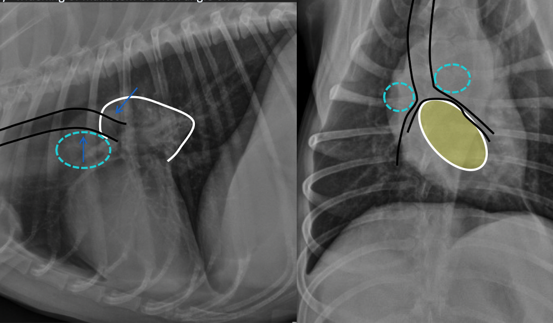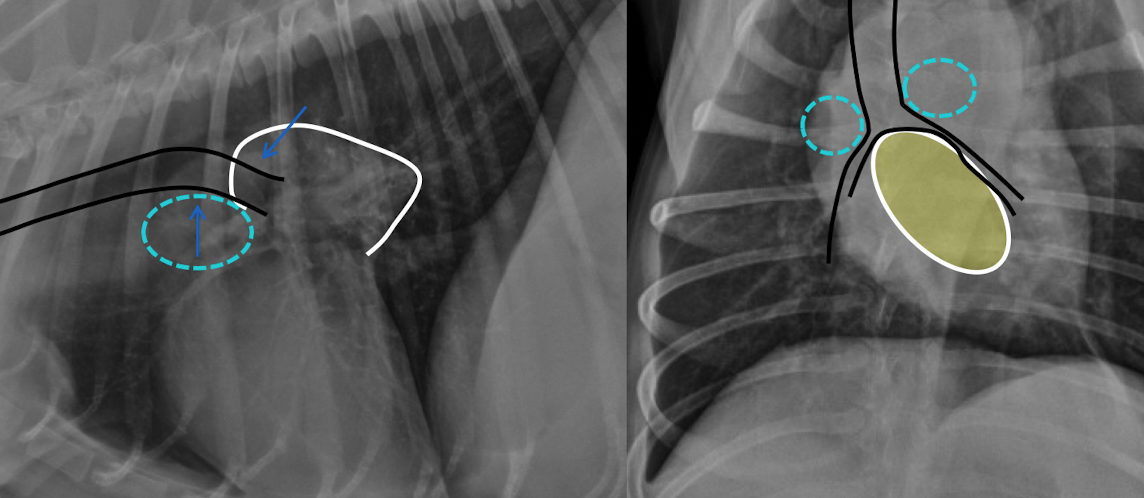 left: enlargment of middle tracheobronchial Lymph node → ventral displacement of carina