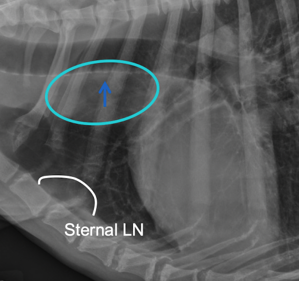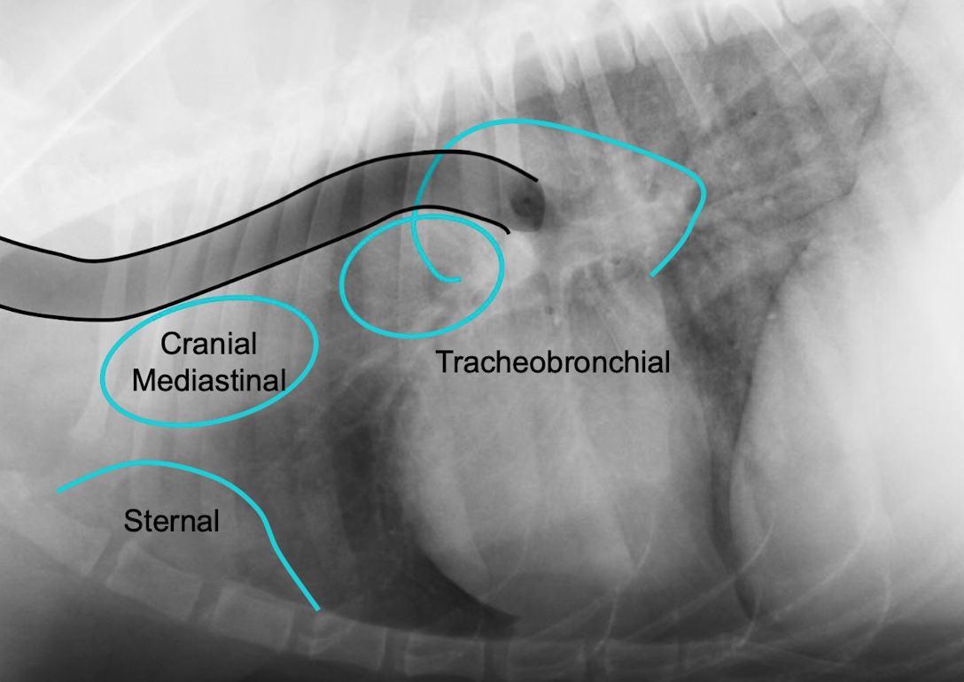which tracheobronchial lymph node will cause dorsal displacement of the caudal trachea