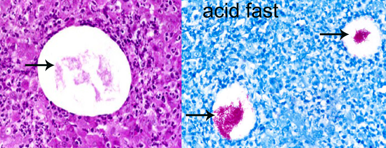 We put a special stain on the slide and found these acid fast bacteria. What is your diagnosis? You know this from microbiology lectures.