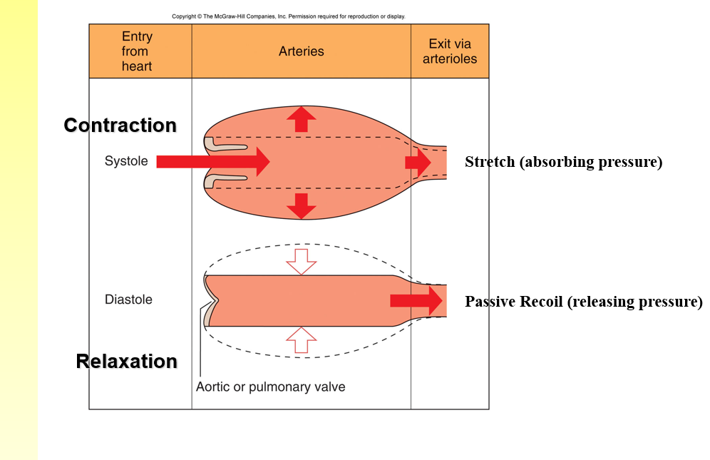THICH LAYER OF ELASTIC SMOOTH MUSCLE ACTS AS A PRESSURE RESERVOIR