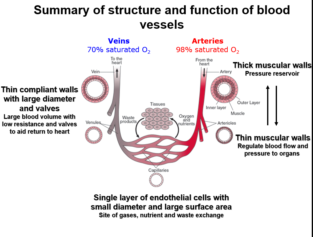 SUMMARY OF STRUCTURE AND FUNCTION OF BLOOD VESSELS