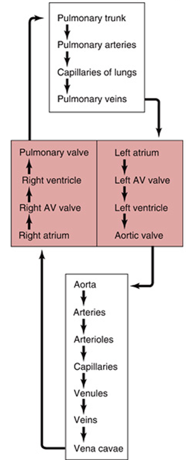 Cardiovascular circulation can be divided into the systemic and pulmonary (lung) circuits with the heart as the central pump