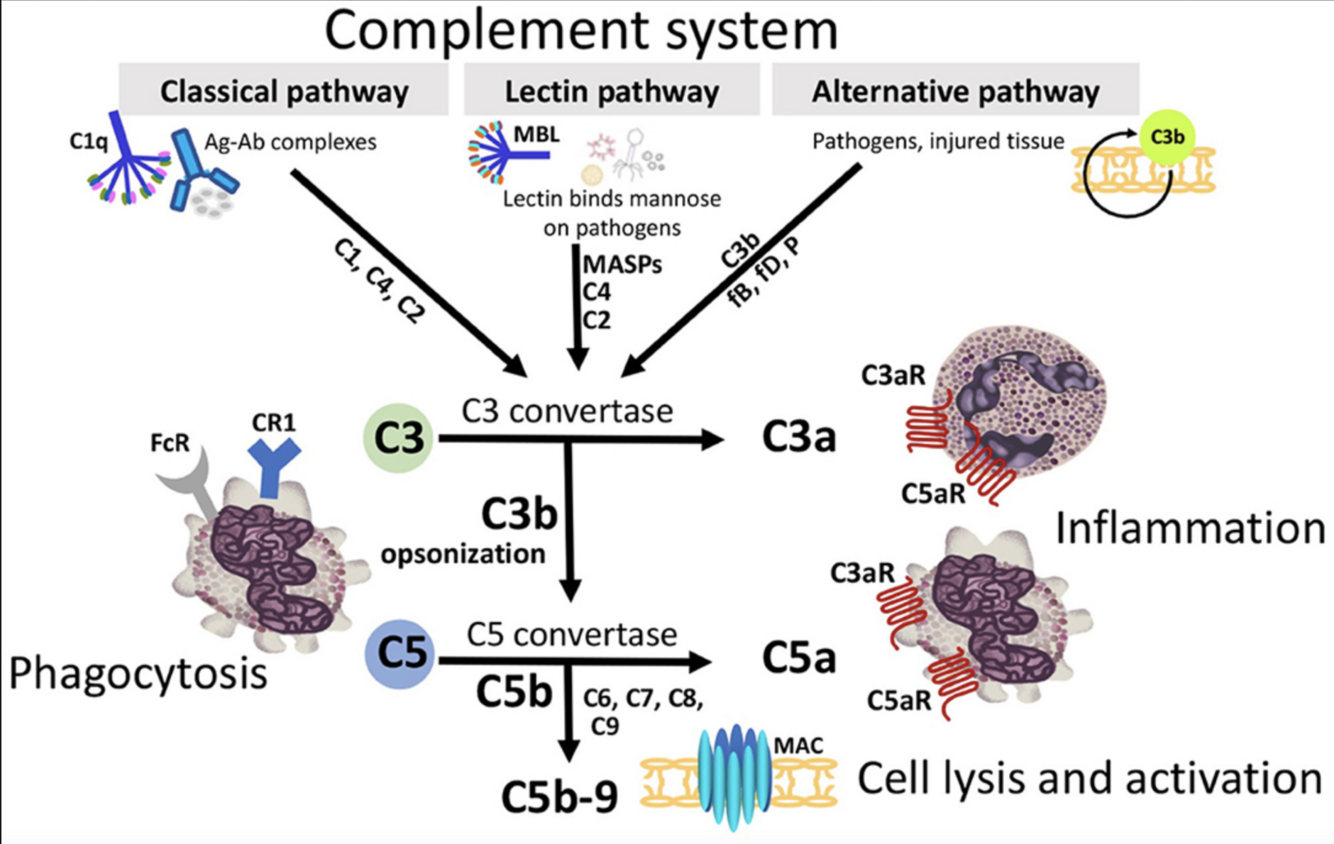 The complement system is an essential component of innate immune system but also works downstream from adaptive immunity.