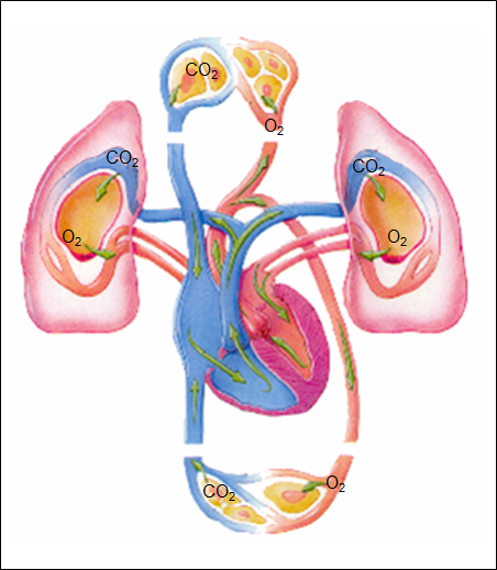 Each heartbeat pumps blood to the lungs and to the body