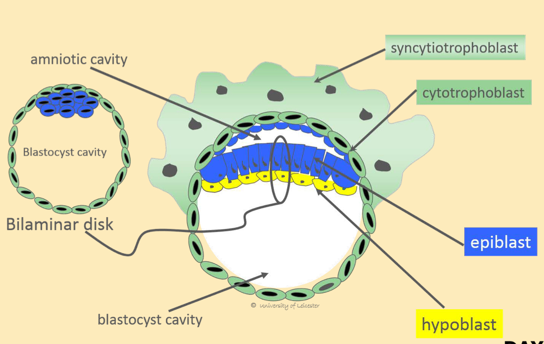 Which cells of the blastocyst develop into the fetal membranes? In which week of embryology does this occur?