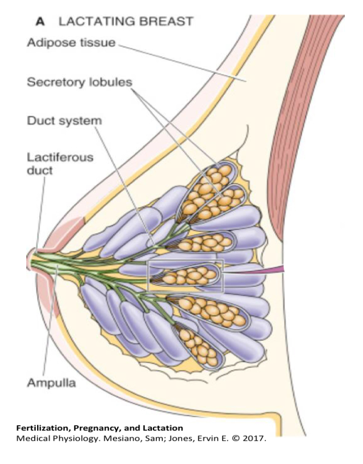 Identify the features of the lactating breast