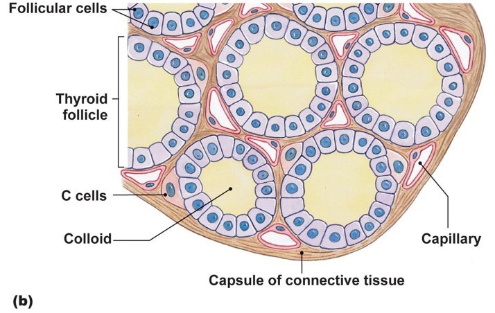 Colloid (sticky glycoprotein) matrix, contains 2 to 3 months supply of TH