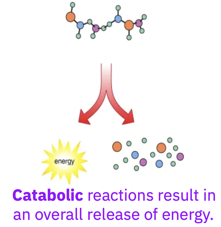 Biochemical reactions that break-down large molecules to make smaller subunits (ex. hydrolysis reactions).