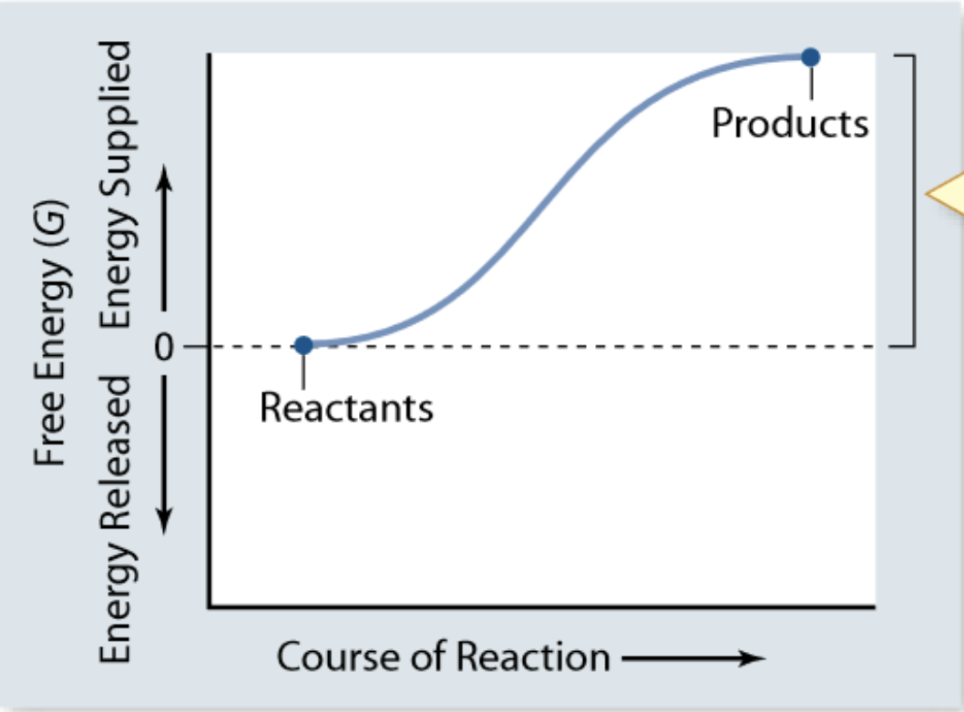 ΔG>0: Reaction is endergonic (not spontaneous) and requires an external energy source.