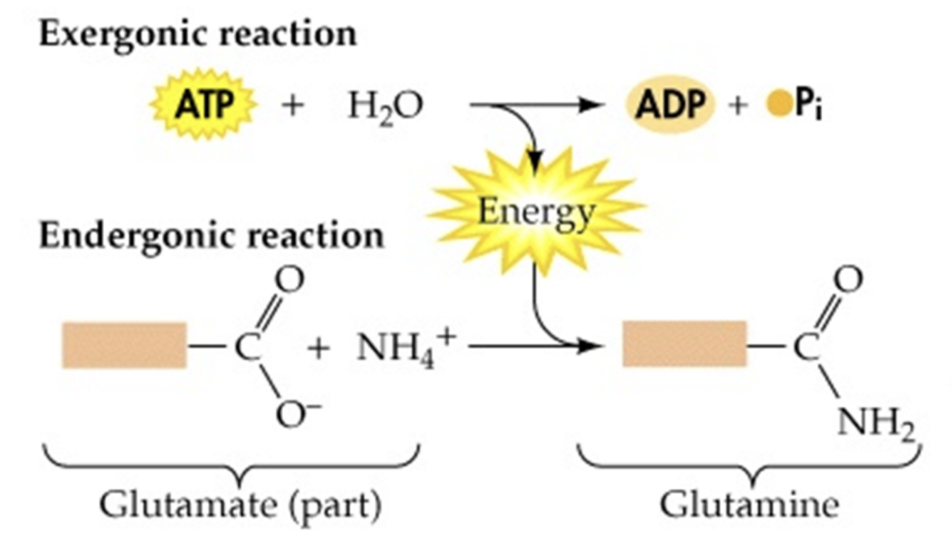 When ATP provides energy, it is coupled with another reaction that uses the released energy to perform work or drive the process forward.