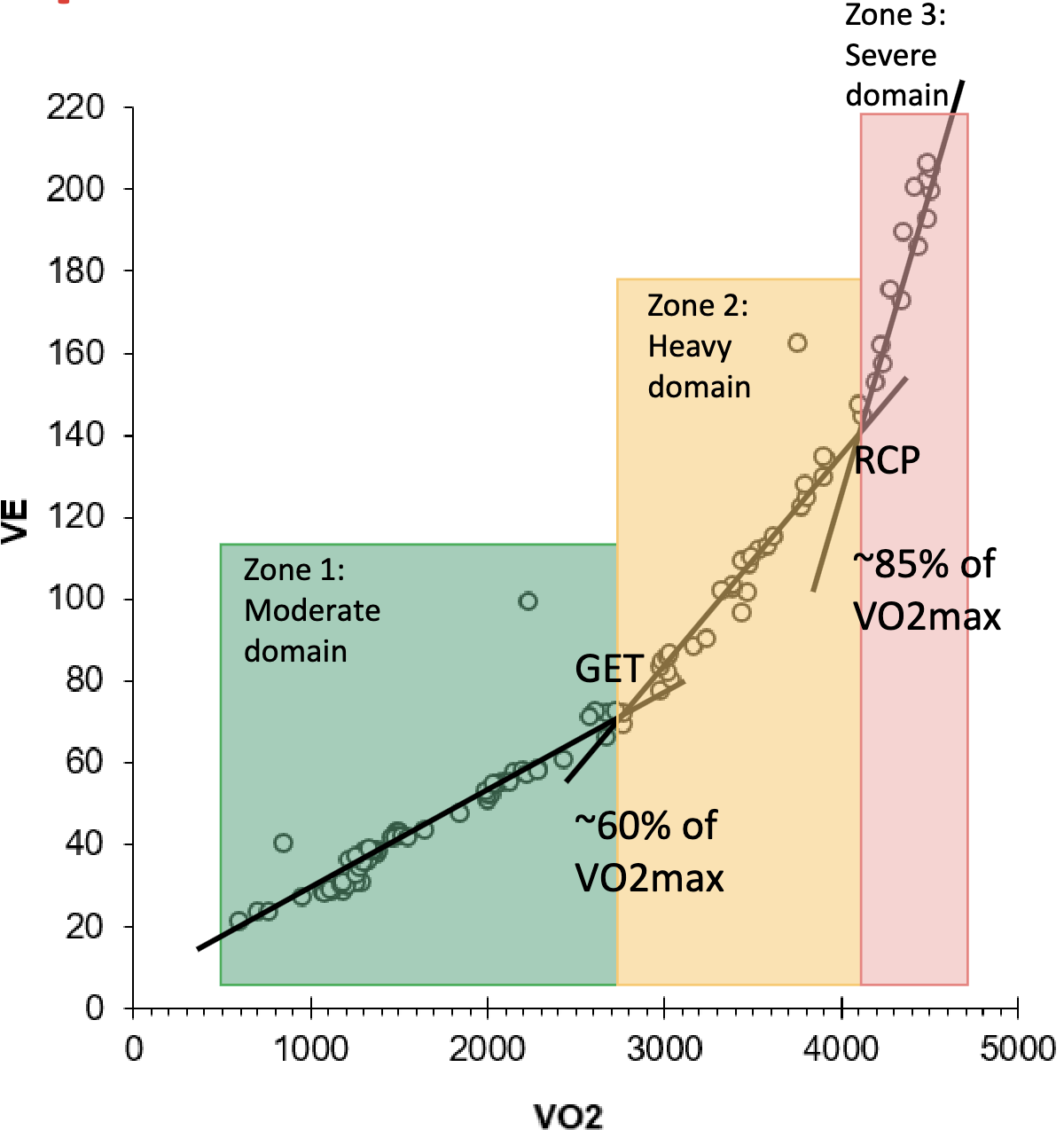 from the linear VE-VO2 relationship.