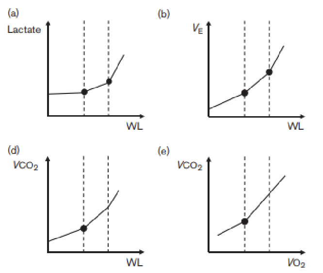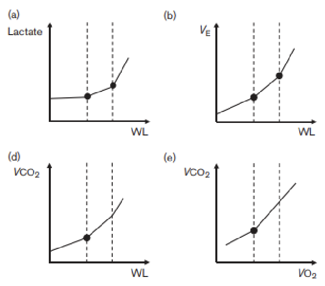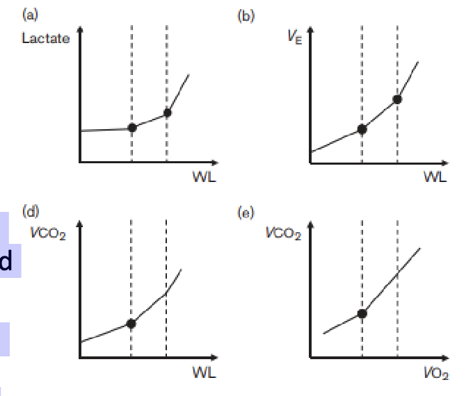 When ventilation or lactate levels change with increasing intensity. Responses like VO₂ or lactate can either stabilize or keep rising, depending on the intensity. This concept is used to identify key points like ventilatory and lactate thresholds.