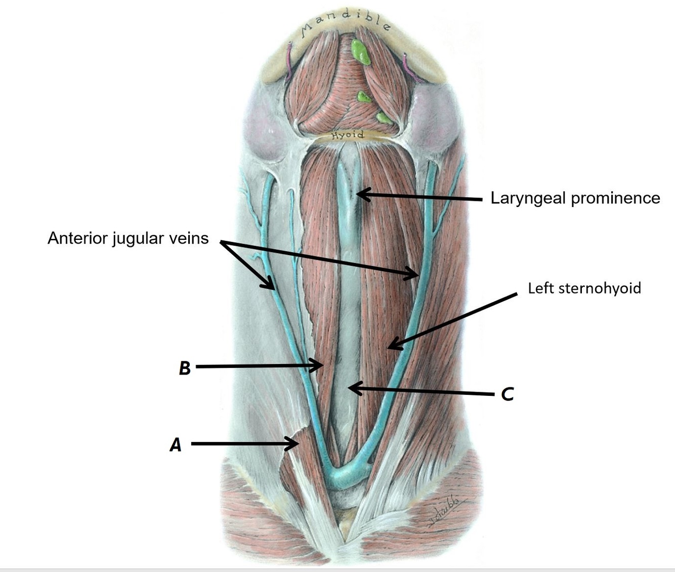 A - Anterior jugular veins