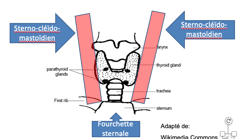 On peut examiner la thyroïde en se tenant soit devant, soit derrière le patient. En pratique, la palpation en position derrière le patient est plus utilisée