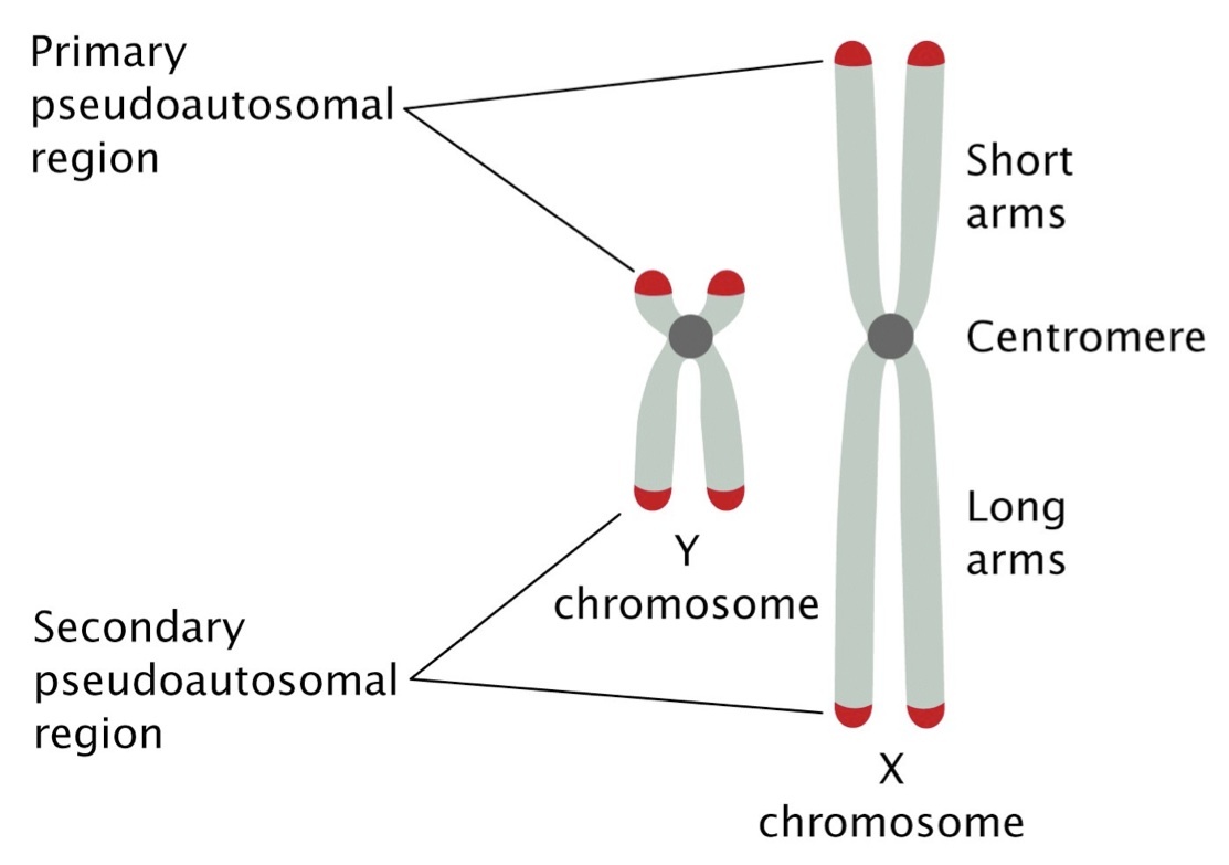 psuedoautosomal regions which are the regions they carry the same genes. See picture of humans below.