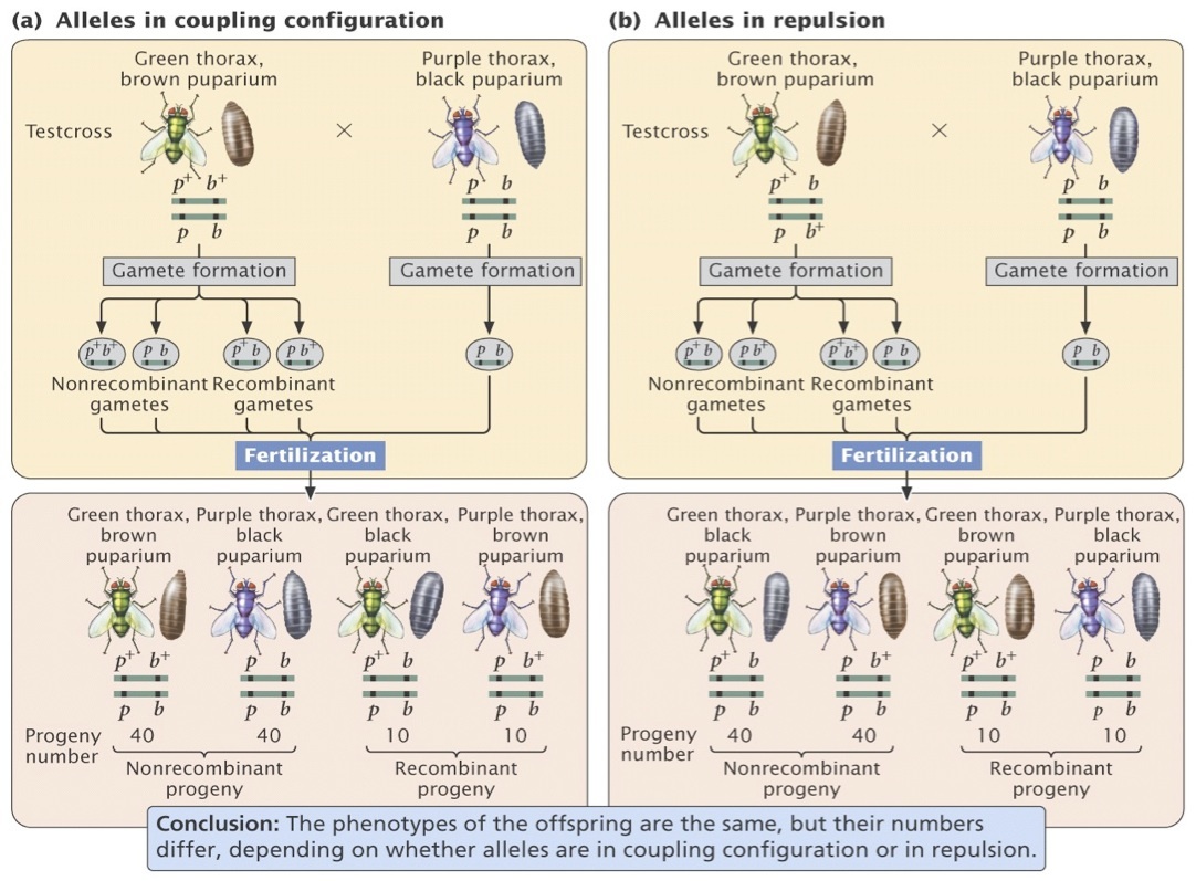Coupling (or cis) configuration is an arrangement where wild type alleles are found on one chromosome and mutant alleles are found on the other chromosome.