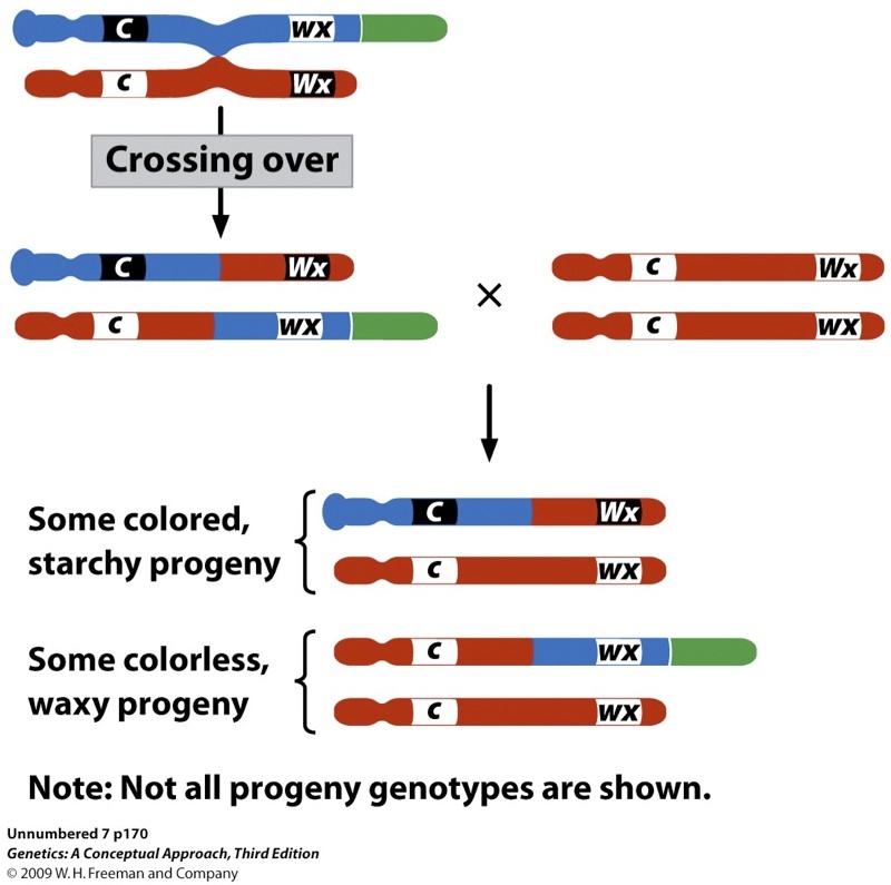 Physical evidence of recombination as presented by Creighton and McClintock in 1931.