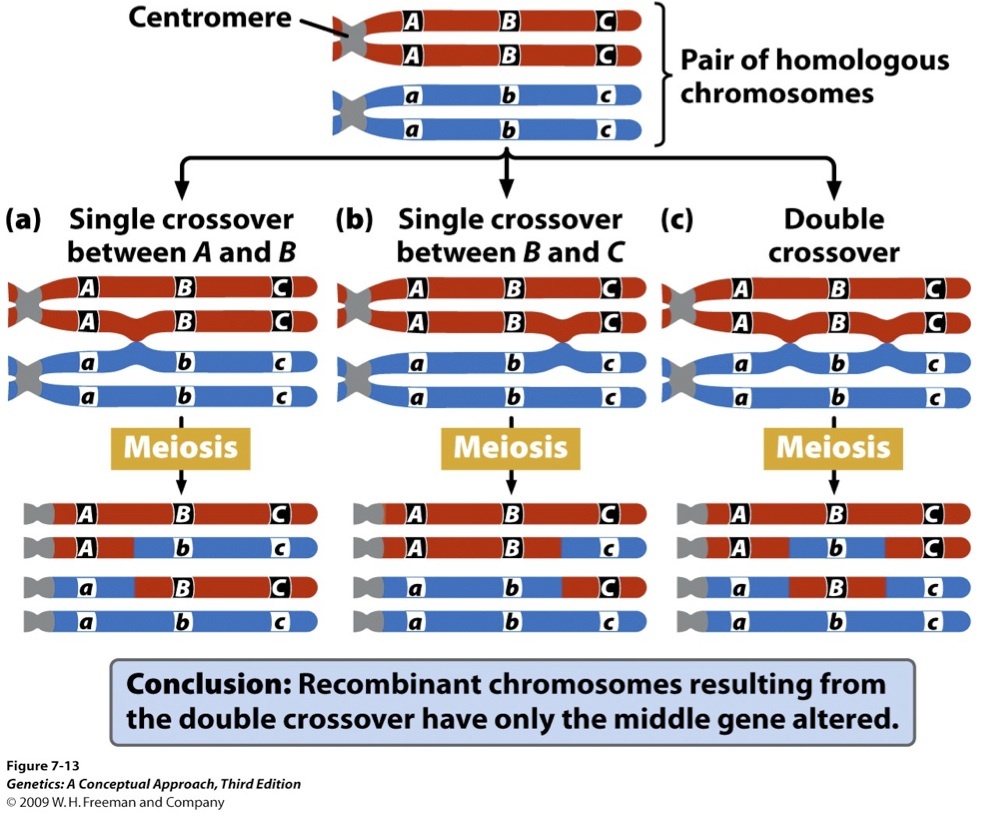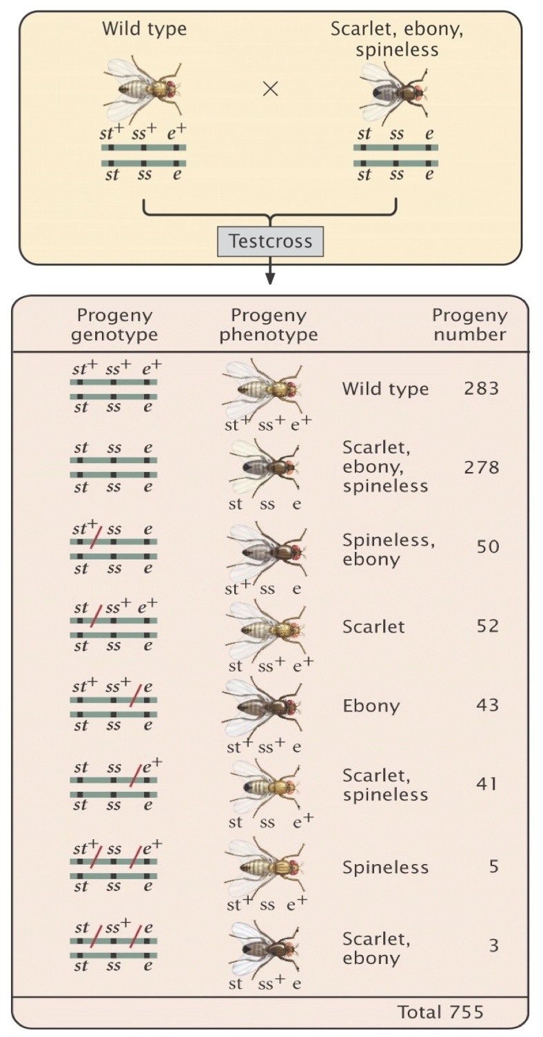 An efficient way to obtain this information is to use a three point cross test in which an individual heterozygous at three linked loci is crossed with an individual that is homozygous recessive at the three loci.