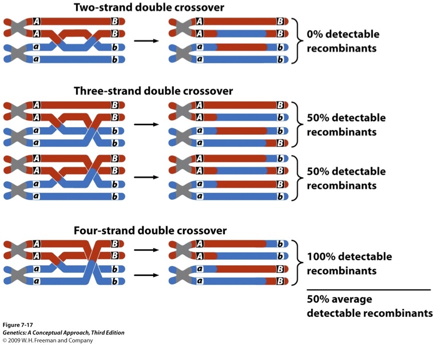 Often produces less than 50% recombinant gametes, however, if genes are far apart on same chromosome then intrachromosomal recombination also produces 50% recombinant gametes.