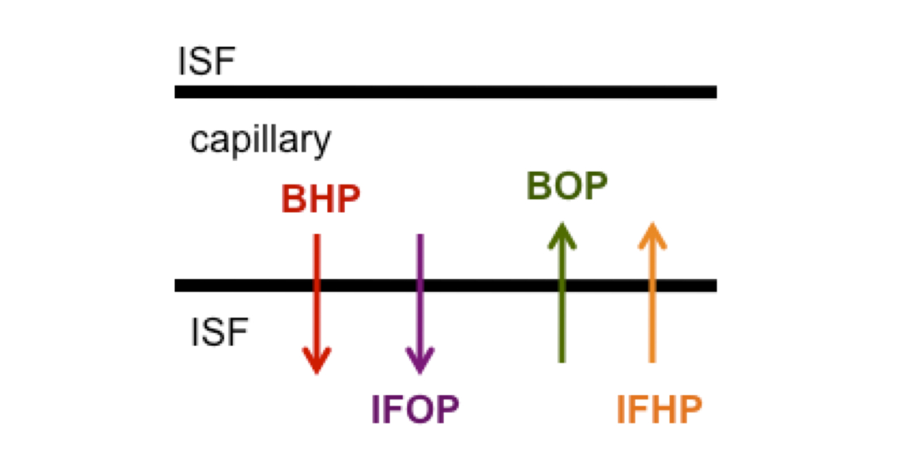 3) ISF hydrostatic P (IFHP) - 0 mmHg
