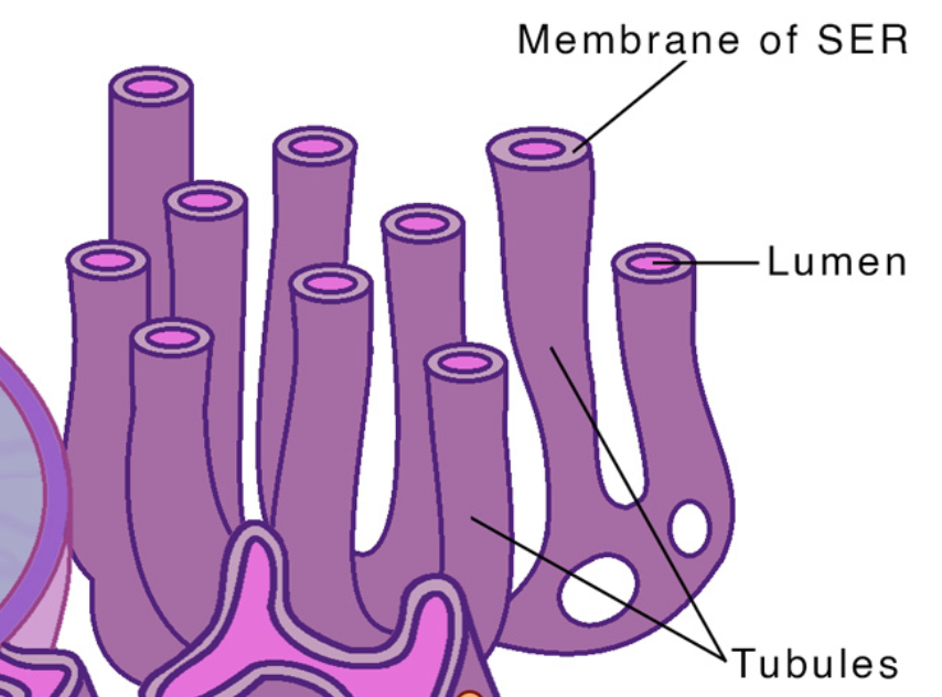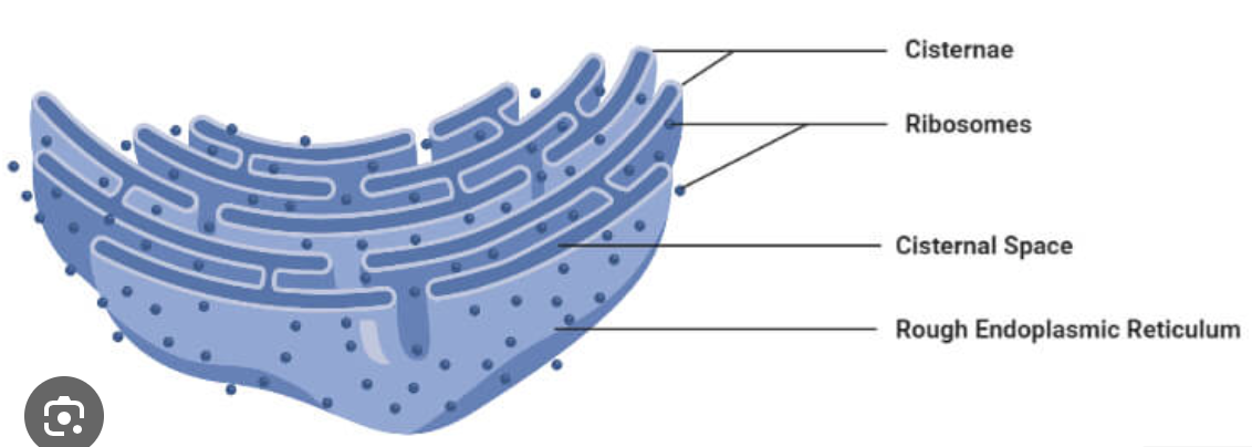 Cisternae: network of tubules and flattened sacs extensors from cell membrane and connects to nuclear envelope.