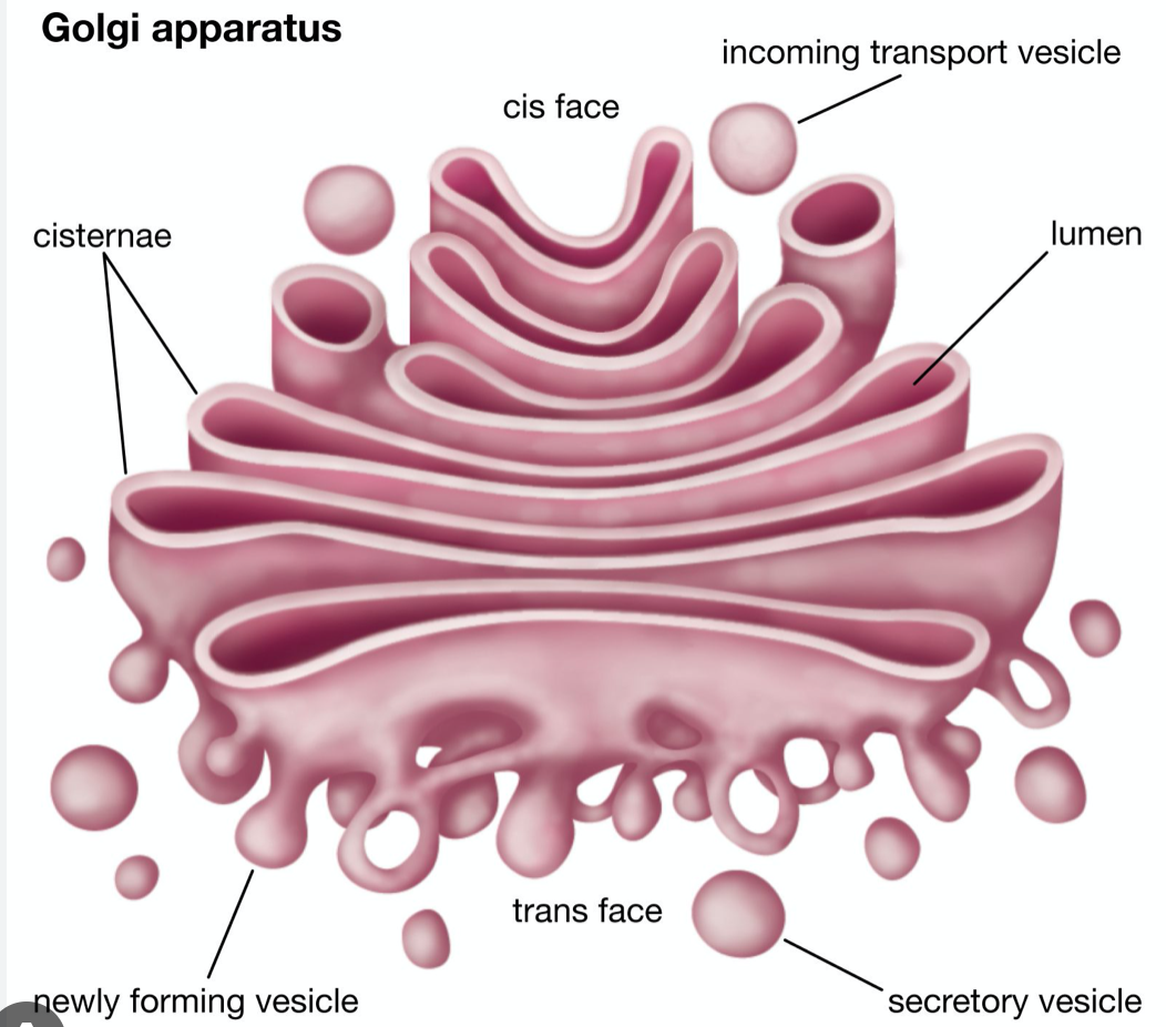 -Modifies and packages correct combinations of proteins, lipids and other chemicals, delivers them to area of the cell where they’re needed