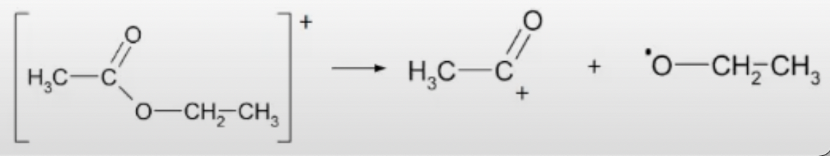 We wouldn’t be able to pick up the radical on the mass spectrometer- only the cation. The process is fragmentation, and forms fragment ions.
