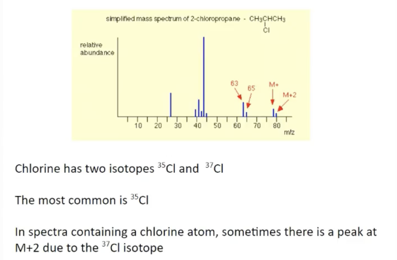 Why is there sometimes a peak at M +2 in a mass spectra? Eg for 2-chloropropane