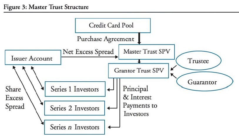 Analyze the differences in the mechanics of issuing securitized products using a trust versus a special purpose vehicle (SPV) and distinguish between the three main SPV structures: amortizing, revolving, and master trust